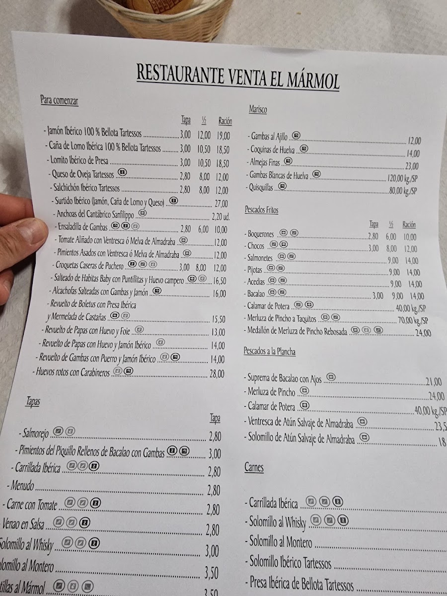 Whether you're indulging in a leisurely breakfast, a hearty lunch, or a delightful dinner, the varied menu excels in offering well-prepared meats, seafood, and an array of tapas. Reviewers consistently highlight the solomillo and the exceptional €11 menu del día, all served with friendly, attentive staff ready to enhance your dining experience. With ample parking and an inviting setting, Restaurante Venta el Marmol is a must-visit destination for a true taste of Sevilla.